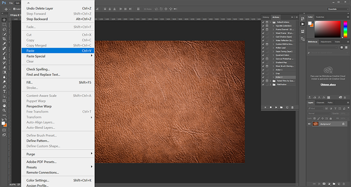 Откройте изображение с текстурой кожи (например, возьмите одну из этих) в Photoshop, и вставьте ваш логотип, выбрав Edit > Paste/Редактировать>Вставить (Ctrl+V). Выберите вариант Smart Object/Смарт-объект.