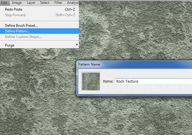 Скопируйте в Photoshop это изображение текстуры камня и выберите в меню Edit>Define Pattern/Редактировать>Определить узор. Назовите паттерн rock texture.
