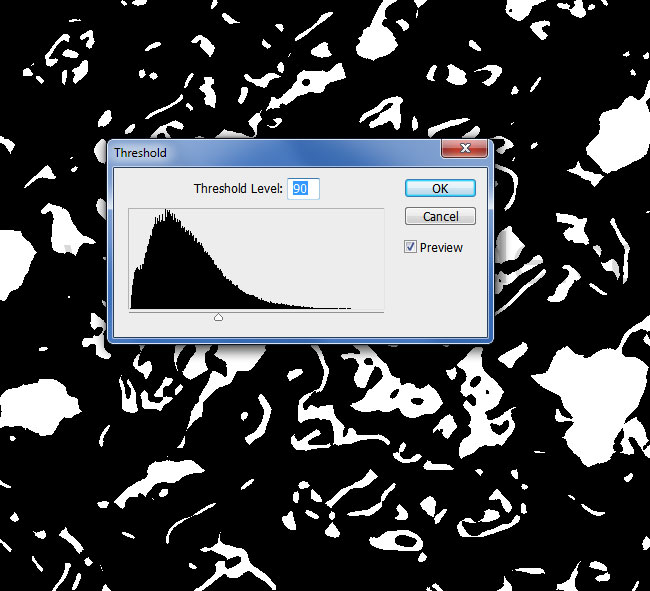 Дублируйте слой Molten Lava Texture и назовите его Mask Layer. Укажите слою режим наложения Normal/Нормальный. В меню выберите Image>Adjustment>Threshold/Изображение>Коррекция>Изогелия. Укажите следующие параметры: