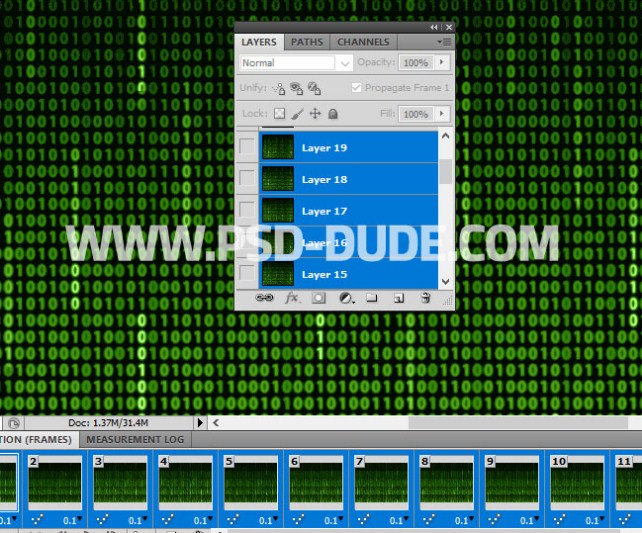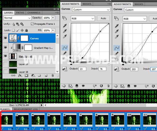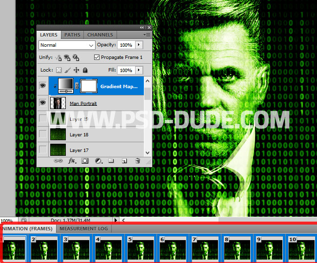 В этом уроке мы будем создавать интересный эффект в стиле Матрицы. Для выполнения этого урока вам понадобится анимированный файл с кодом из Матрицы. Он есть в ресурсах для этого урока. Это несложный но интересный туториал, который познакомит вас с основными инструментами работы с анимацией в Adobe Photoshop.