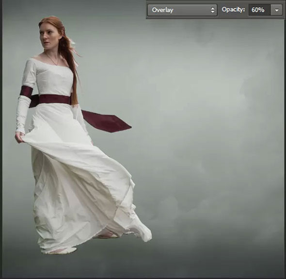 Смените Blendind Mode (Режим наложения) для этого слоя на Оverlay (Перекрытие) и снизьте параметр Оpacity (Непрозрачность) до 60%.