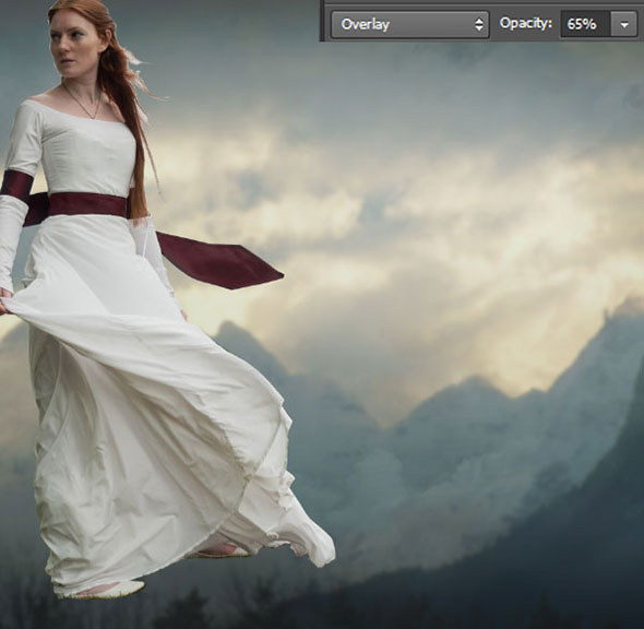 Смените режим наложения для этого слоя на Оverlay (Перекрытие) и укажите ему Оpacity (Непрозрачность) в 65%.