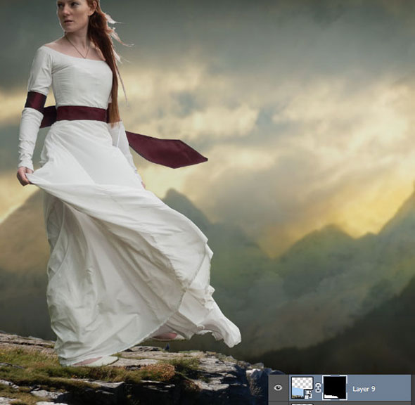 Тем же способом что и раньше, выделите скалу с фона и примените к ней слой-маску.