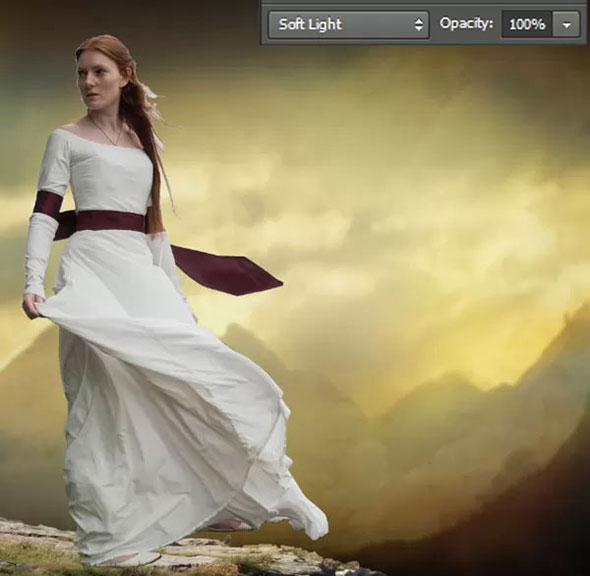 Смените режим наложения слоя на soft light (мягкий свет).