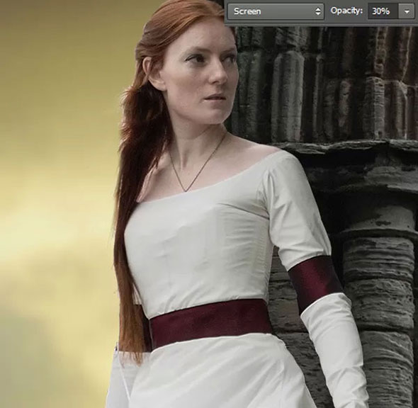Чтобы сделать кожу модели светлее, дублируйте слой-копию, укажите слою режим наложения Screen (Осветление) и убавьте параметр Оpacity (непрозрачность) до 30%.