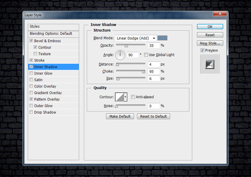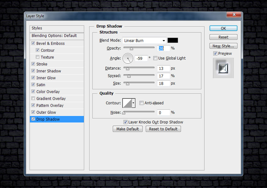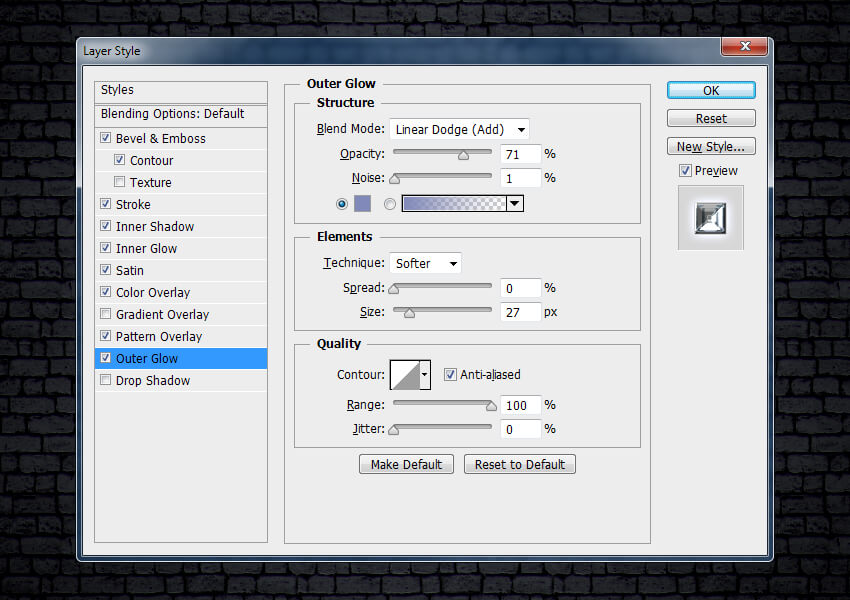 Нажмите OK, чтобы принять все указанные стили слоя.