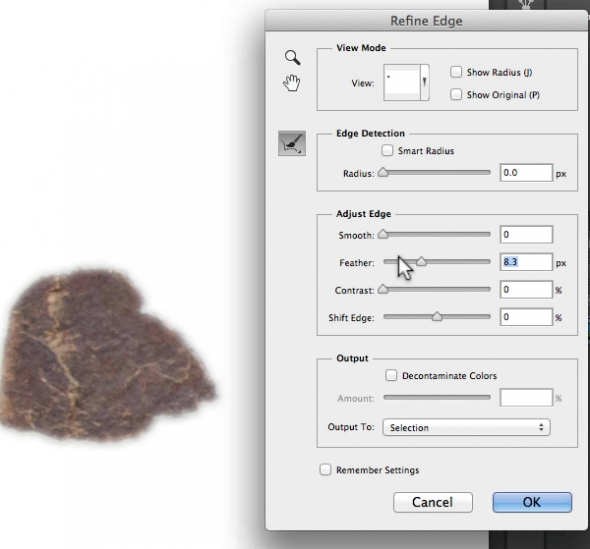 Функция позволяет смягчать края выделенной области. В зависимости от нужного смягчения, нужно выбрать соответствующий размер смягченной области.
