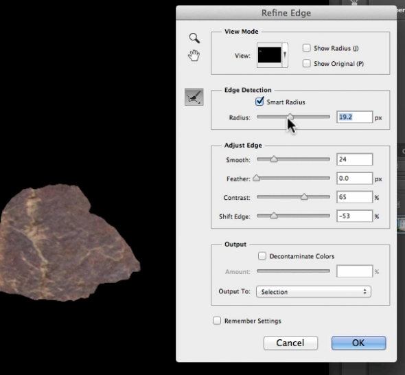 Очень мощный инструмент для создания выделенной области. Здесь вы найдете очень много полезных настроек, которые пригодятся при создании выделенных областей с мелкими деталями. Здесь вы найдете «Умный радиус», «Очистить цвет», опцию смещения края выделения и многое другое.