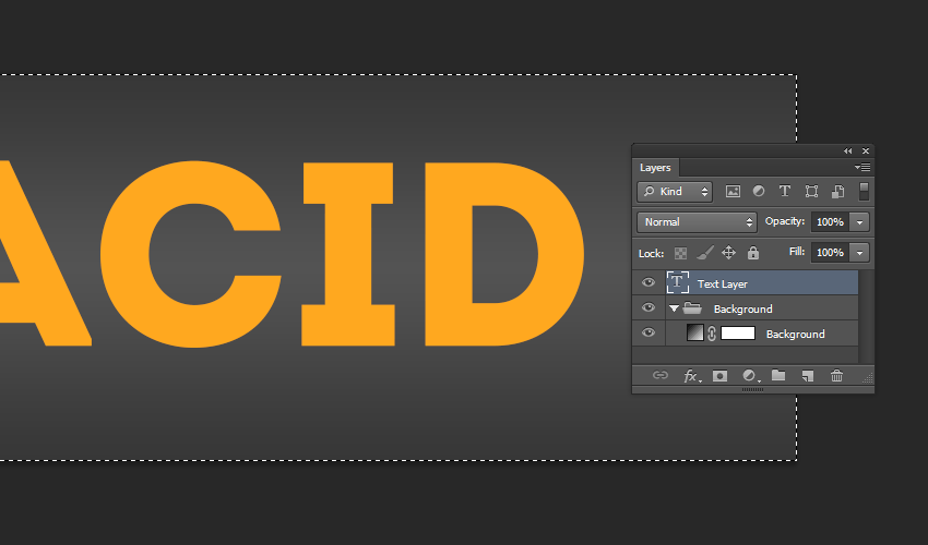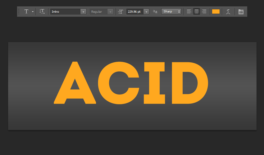 Возьмите инструмент Type/Текст (T) и шрифтом Intro размером в 230 pt введите текст. В нашем случае это слово «ACID». Все буквы должны быть заглавными, а цвет неважен.