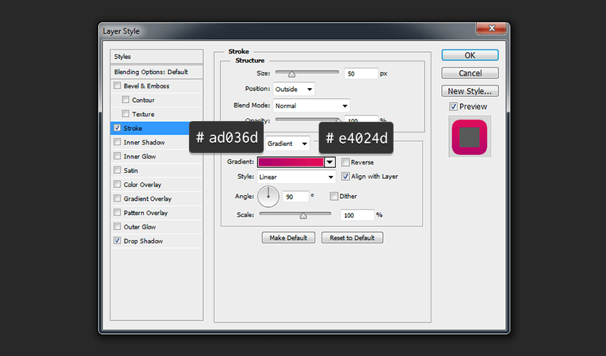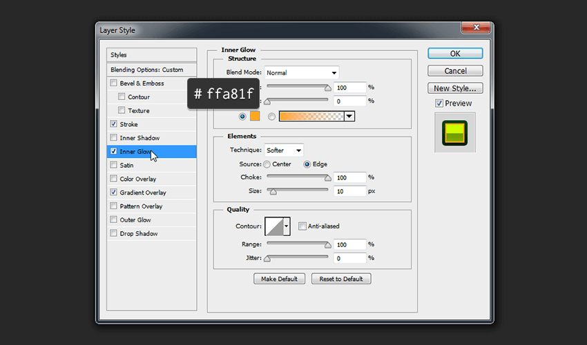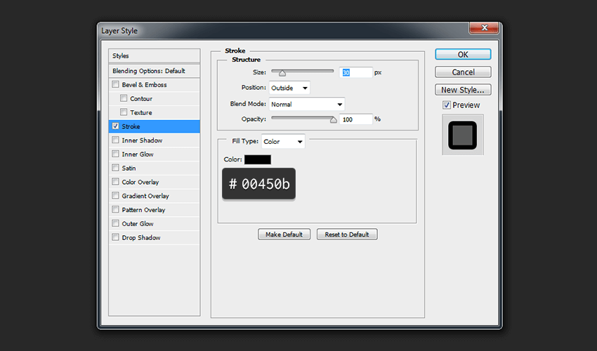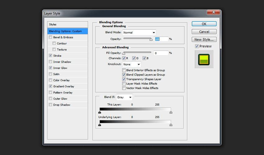 Откройте стили слоя для этого слоя и укажите ему следующие стили: