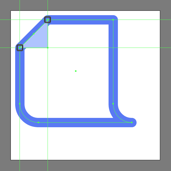 Инструментом Delete Anchor Point/Удалить опорную точку (-) удалите левую верхнюю точку основной фигуры, а также левую верхнюю точку квадрата.