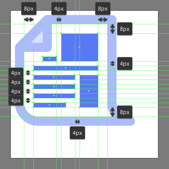 Нарисуйте квадрат размером 24 x 24 px цвета #B0C5FF и поместите его в левый верхний угол нашей основной фигуры.