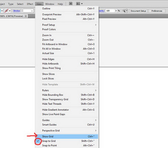 Начем с создания нового документа. Чтобы сделать видной сетку, воспользуйтесь View > Show Grid / Просмотр > Показать сетку. Убедитесь, что возле Snap to Grid / Привязать к сетке стоит галочка.