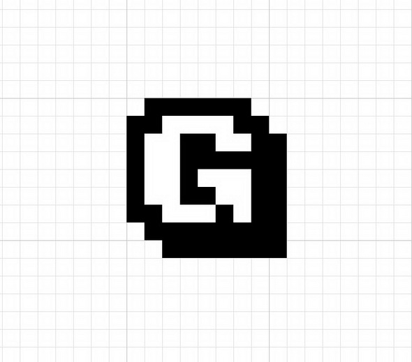Вот наша первая буква. Просто привяжите себя к квадратам-пикселям, и вы не ошибетесь. Теперь всего лишь выбираете нужные квадратики и меняете их цвет с синего на белый.