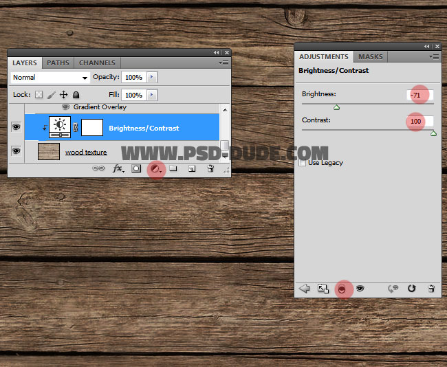 Создайте корректирующий слой Brightness and Contrast/Яркость/Контрастность над слоем с деревом.