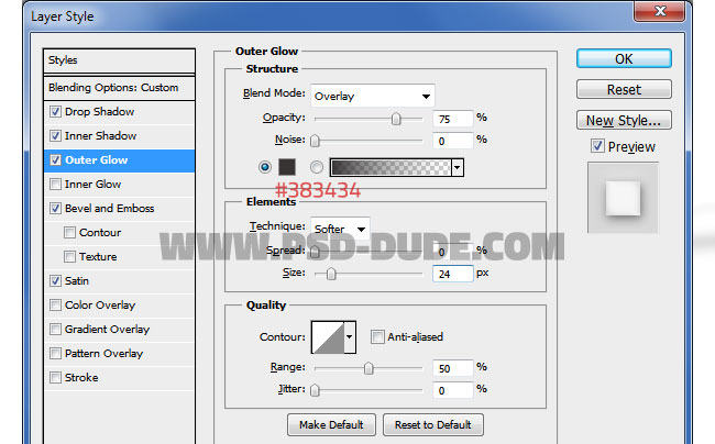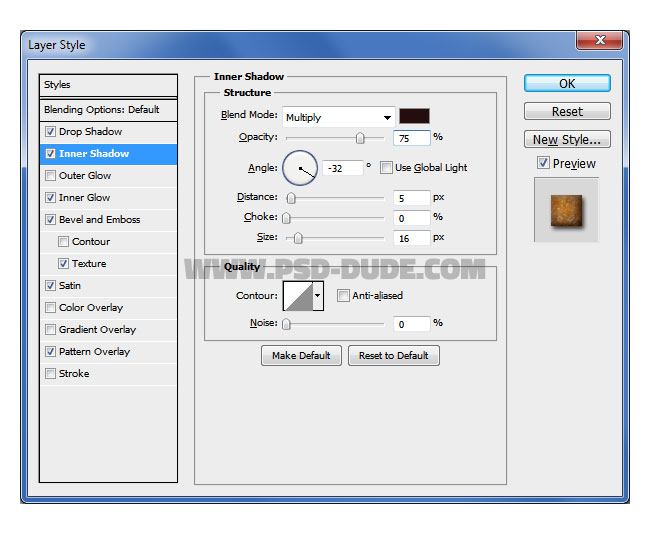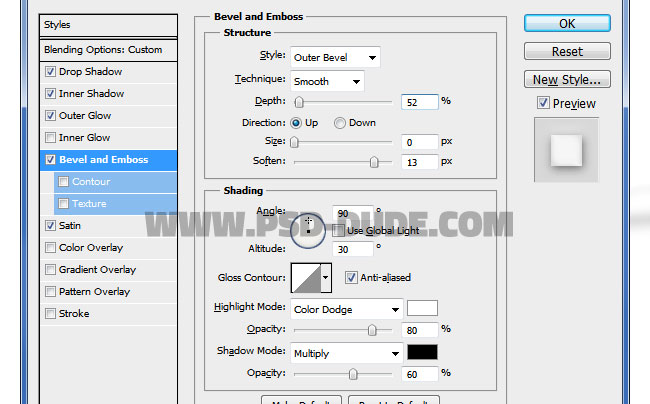 Создайте новый слой под названием Pizza Crust. Укажите ему Fill/Заливку в 0% и следующие стили слоя: