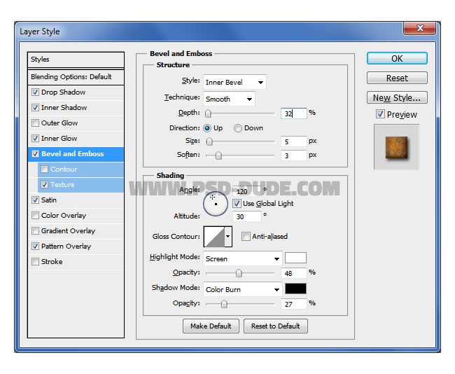 Для текстуры в стиле Bevel and Emboss/Тиснение используйте эту текстуру