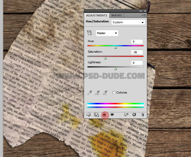 Создайте корректирующий слой Hue/Saturation / цветовой тон/насыщенность и сделайте его обтравочным для слоя Newspaper1.