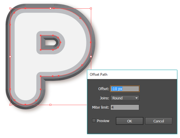 Создайте третью заливку поверх первых двух и закрасьте ее в еще более светлый оттенок серого. Зададим параллельный контур на -10 px.