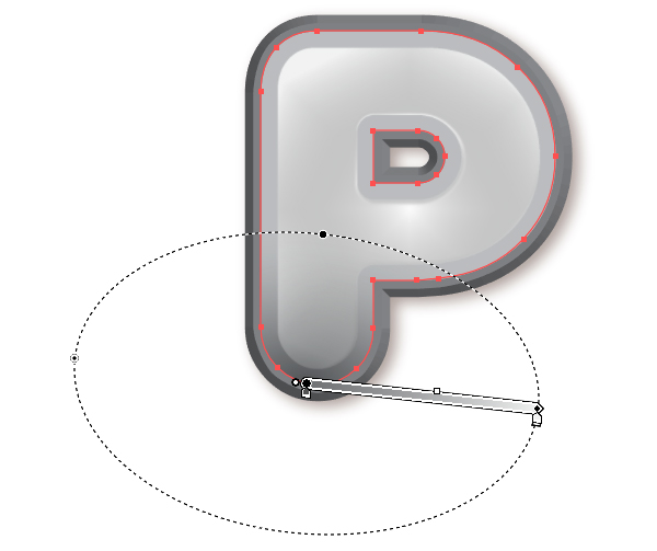 Создайте новую заливку поверх всех предыдущих и примените Radial Gradient / Радиальный Градиент с темно-серого со 100%-ной непрозрачностью до светло-серого с нулевой непрозрачностью. Настройте радиус градиента и его местоположение с помощью инструмента Gradient / Градиент. Мы расположили свой на нижней части объекта.