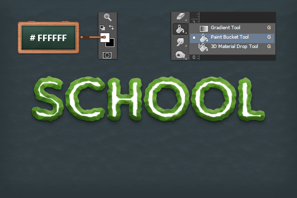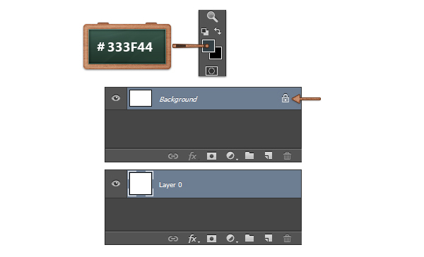 В палитре инструментов выберите в качестве первого цвета #333F44, возьмите инструмент Paint Bucket/Заливка и залейте им фон.