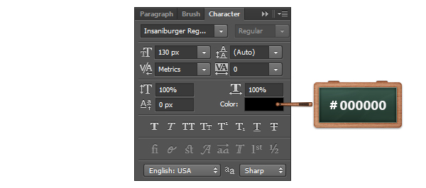 Возьмите инструмент Type/Текст и используйте шрифт Insaniburger Font by Insanitype.