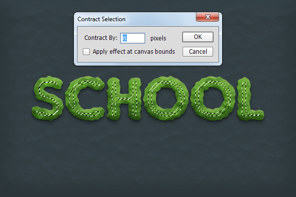 В меню выберите Select > Modify > Contract/Выделение>Модификация>Сократить. И укажите отступ а 8px.