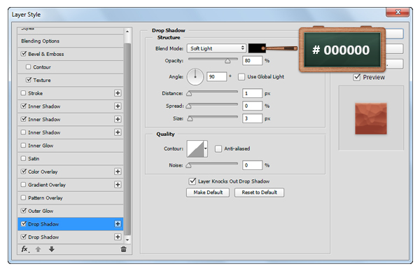 Откройте окно Layer Style/Стиль слоя для слоя с текстом, и укажите ему следующие стили: