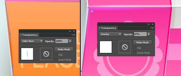 Копируйте меньший прямоугольник и вставьте копию ниже. Вместо того чтобы редактировать градиент для копии прямоугольника, вы можете воспользоваться следующим методом. Копируйте и вставьте поверх остальных слоев нижний большой прямоугольник. Укажите ему темно-серый цвет и смените Blending Mode/Режим наложения на Multiply/Умножение в палитре Transparency/Прозрачность, а также снизьте Opacity/Непрозрачность до 40%.