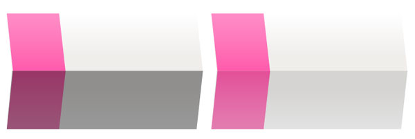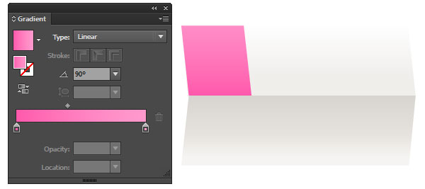Нарисуйте прямоугольник поменьше и повторите угол скоса при помощи инструмента Shear/Наклон. Меньший прямоугольник будет размером примерно с ¼ — 1/3 от полного прямоугольника. Вы можете выбрать любой цвет для этого прямоугольника. В примере использован розовый. Примените к меньшему прямоугольнику радиальный градиент от светло-розового к более темному оттенку.