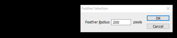В меню выберите Select > Modify > Feather/Выделение>Модификация>Модификация и укажите радиус растушевки в 200 pixels. Нажмите OK.