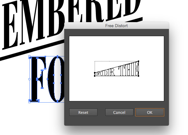 Выделите третью группу текста и в меню выберите Effect > Apply Free Distort/Эффект>Применить произвольное искажение, чтобы применить эффект с теми же параметрами, что мы выбрали ранее.