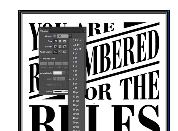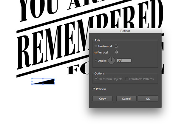 Нарисуйте тонкий прямоугольник под текстом и примените к нему трансформацию Shear/Наклон, повторив угол наклона текста. Дублируйте прямоугольник и обрамите им вторую группу текста. Инструментом Pen/Перо нарисуйте треугольник, чтобы заполнить пустое пространство в правом верхнем углу.