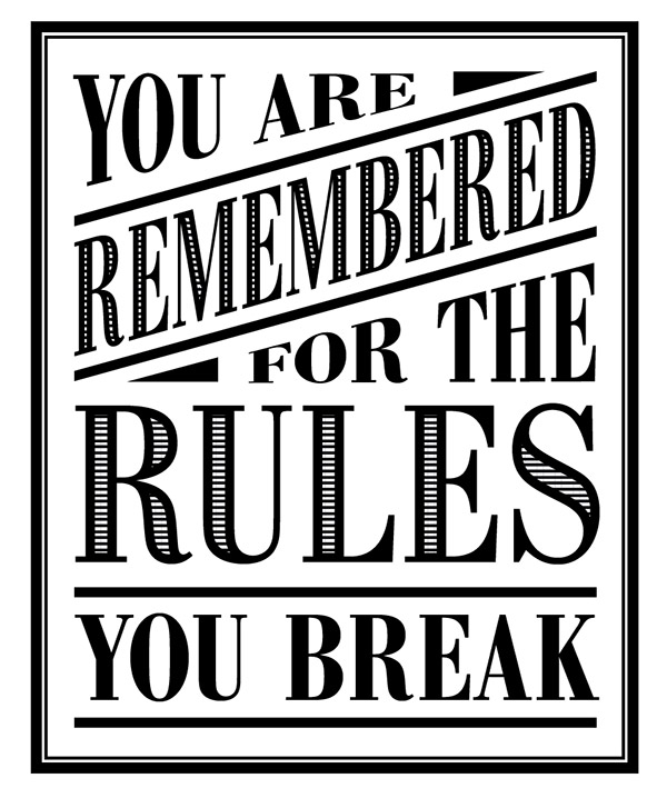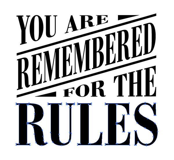 Завершаем концепт последним словом, масштабированным и выровненным по остальным элементам. При помощи узких прямоугольников сделайте дизайн интереснее.
