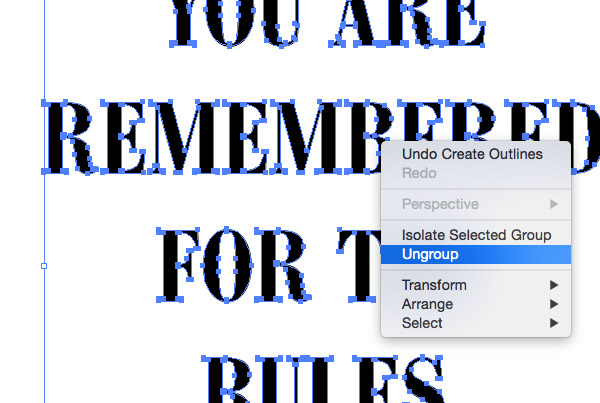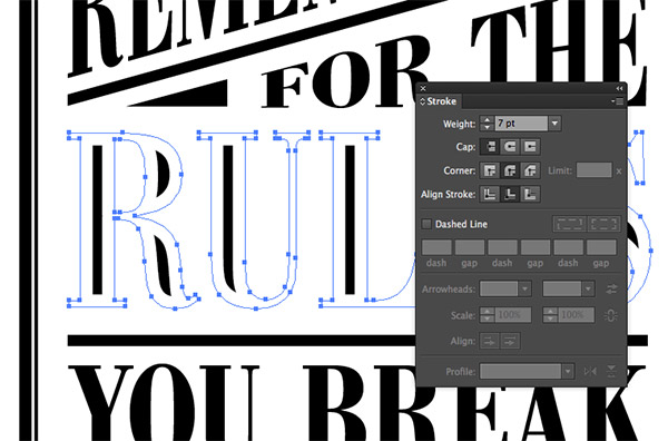 Сгруппируйте все что осталось, смените для них цвет обводки на белый, затем нажмите CMD/Ctrl+B, чтобы вставить на задний план ранее скопированный текст.