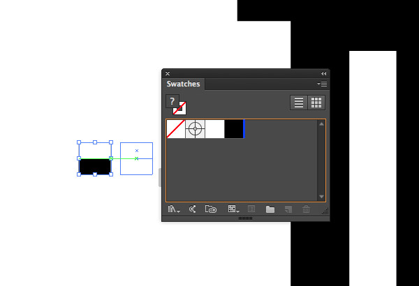 Где-нибудь в документе нарисуйте маленький черный квадрат. Нажмите CMD/Ctrl+C и CMD/Ctrl+F, чтобы создать копию, затем уменьшите копию в половину оригинала (включите Smart Guides/Быстрые направляющие, чтобы сделать все точно). Укажите меньшей фигуре белый цвет заливки, выделите оба объекта и перетащите их в палитру Swatches/Образцы.