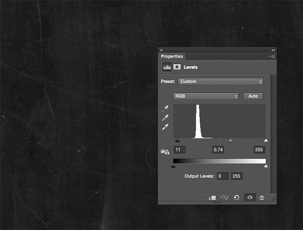 Добавьте корректирующий слой Levels/Уровни и переместите бегунки темных и средних тонов, чтобы затемнить текстуру.