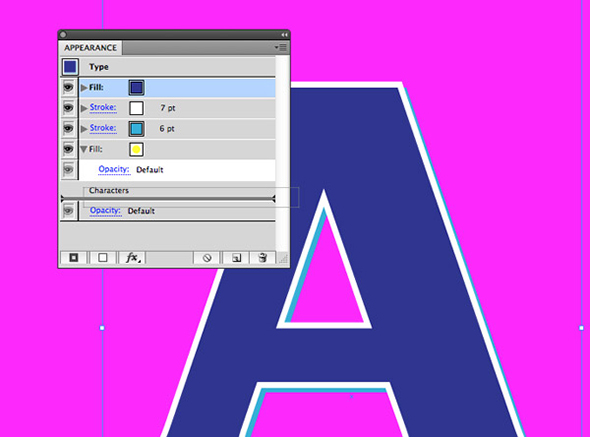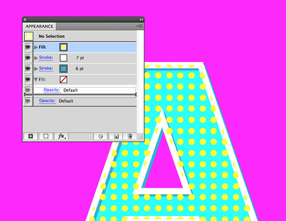 В палитре Appearance/Оформление создайте новую заливку для нашей буквы и укажите ей заливку из только что созданного паттерна.