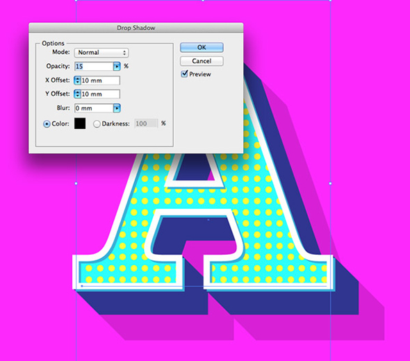 Вернитесь в меню Effects/Эффекты и выберите Stylize > Drop Shadow/Стилизация> Тень. Настройте параметры как показано выше. Получится эффект длинной тени.
