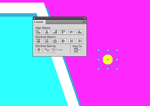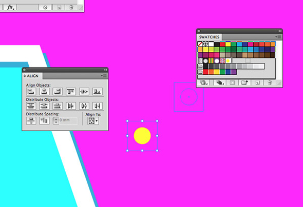 Нарисуйте где-нибудь в рабочей области маленький круг и укажите ему заливку желтого цвета. Теперь нарисуйте вокруг круга квадрат без заливки и обводки. При помощи палитры Align/Выравнивание выровняйте круг и квадрат по центру осям X и Y.