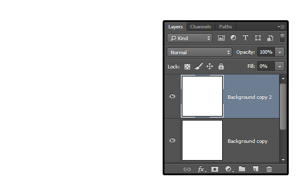 Создайте новый документ размером 950 x 950 px, дважды дублируйте слой фона. Выберите вторую копию слоя и укажите ей Fill/Заливку в 0%.