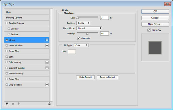 Укажите слою стиль Stroke/Обводка со следующими параметрами: