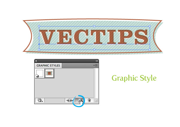 Теперь давайте сохраним нашу работу как Graphic Style/Стиль графики. В этом случае мы сможем применить эффект к любому объекту. Для этого вам нужно выделить работу и кликнуть по иконке New Graphic Style/Новый стиль графики в палитре Graphic Styles/Стили графики.