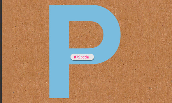 Создайте первую букву надписи шрифтом “Coolvetica”, размером примерно 590pt. Выберите для буквы светлый цвет. В примере использован голубой #79bcde.