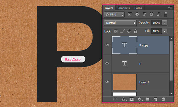 Кликните дважды по слою с растрированной буквой и укажите ему стиль слоя Drop Shadow/Тень: