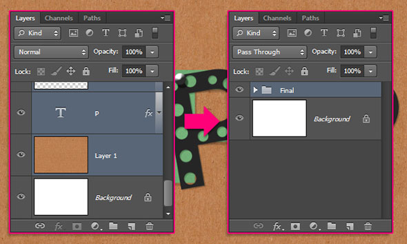 Когда вы закончите, сгруппируйте все созданные до этого момента слои. Для этого удерживая Shift кликните по каждому слою в палитре Layer/Слои, затем в меню выберите Layer -> Group Layers/Слой>Сгруппировать слои.