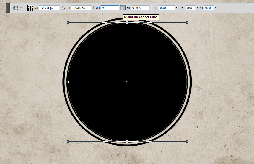 Переключитесь в слой Circle 2 и нажмите Command/Control-T, чтобы войти в режим трансформирования. Уменьшите круг до 95%.
