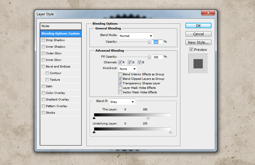 Откройте окно Layer Style/Стили слоя для слоя Man Portrait. Настройте слайдеры Blend If/Наложить, если как показано ниже.
