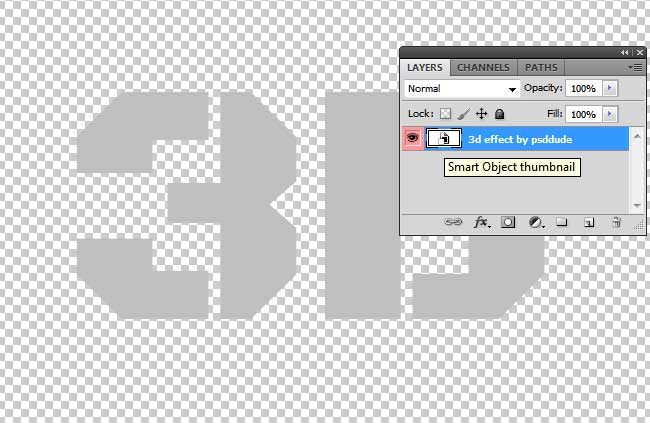 Вновь кликните по иконке слоя «3d effect by psddude», чтобы открыть смарт-объект.