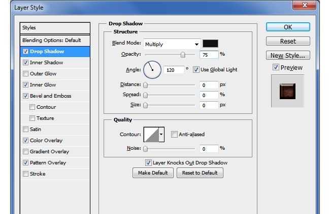 Сохраните смарт-объект и закройте его, чтобы увидеть результат. Теперь кликните дважды по слою «3d effect by psddude» и укажите ему следующие стили слоя: